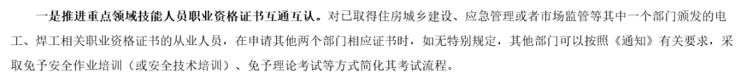 以建筑行业的电工为例,以往需分别考取住建部门的建筑电工证、应急管理部门的特种作业操作证才能跨场景就业,如今 “一证免考进阶”,不仅节省数培训考试费用,更能缩短取证周期,让技能变现效率大幅提升。
